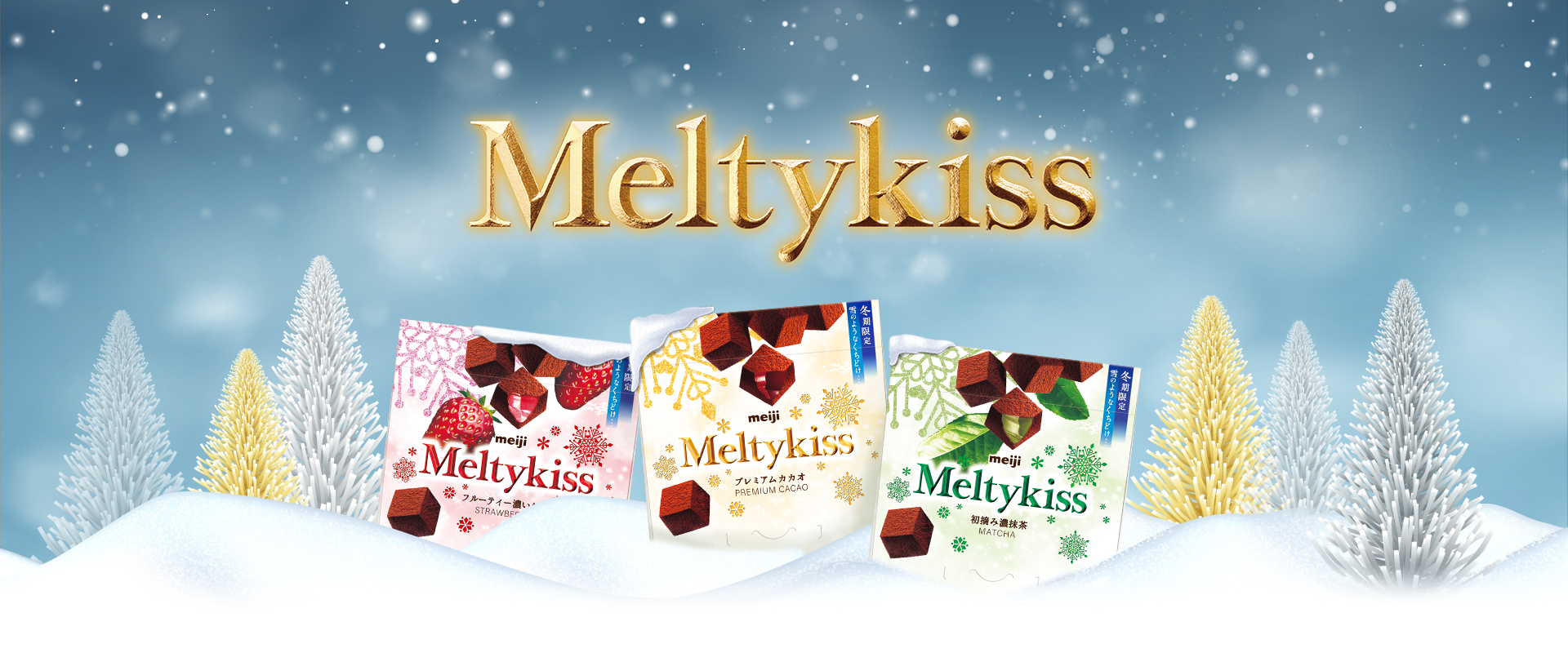 明治利用獨有配方,完美實現了如雪一般融化於口的質感,Meltykiss大約在23℃就會開始融化,因此由於運輸限制,只能在冬季與大家見面。如今,「冬期限定」已經變成是Meltykiss的賣點之一,對巧克力迷來說,在冬天吃Meltykiss就像是一種儀式感。