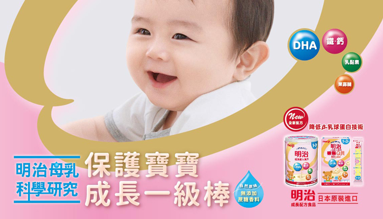 即日起至明治特約通路,購買樂樂Q貝成長配方買6送1,明治罐裝成長配方買7送1,數量有限,送完為止。