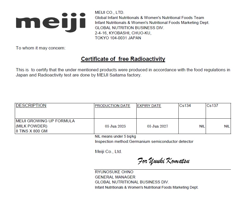 成長配方檢驗報告 罐裝 批號 2025/6/5-產品安全資訊
