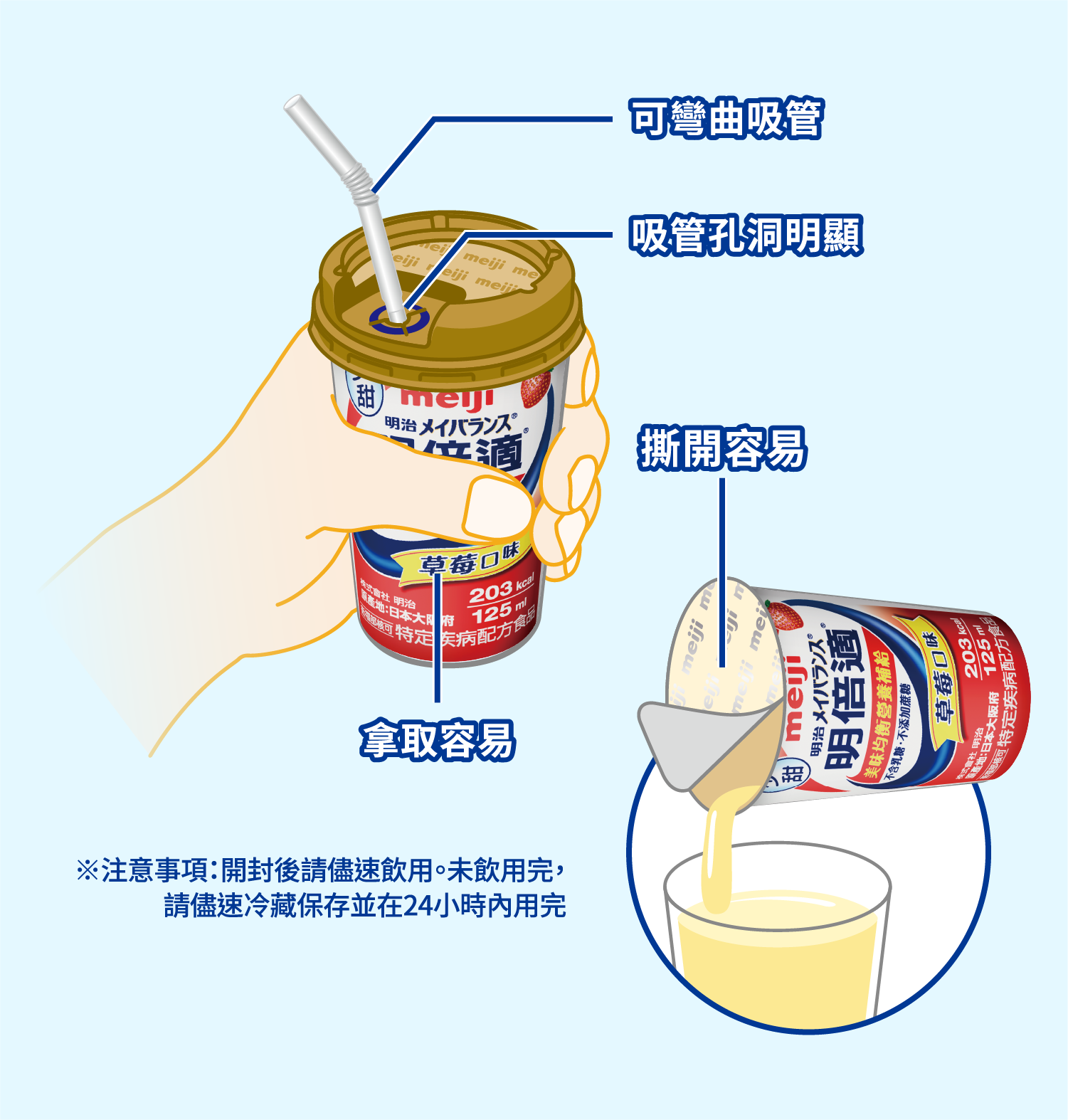 承襲「YH-80」的「明倍適」 ,提供美味、營養,讓一般民眾能夠方便取得飲用。
